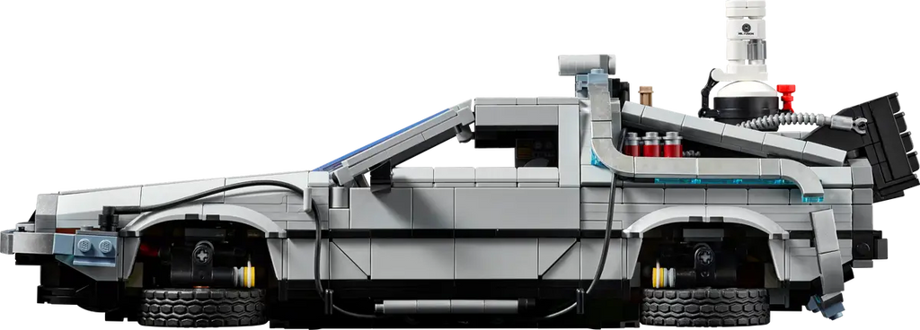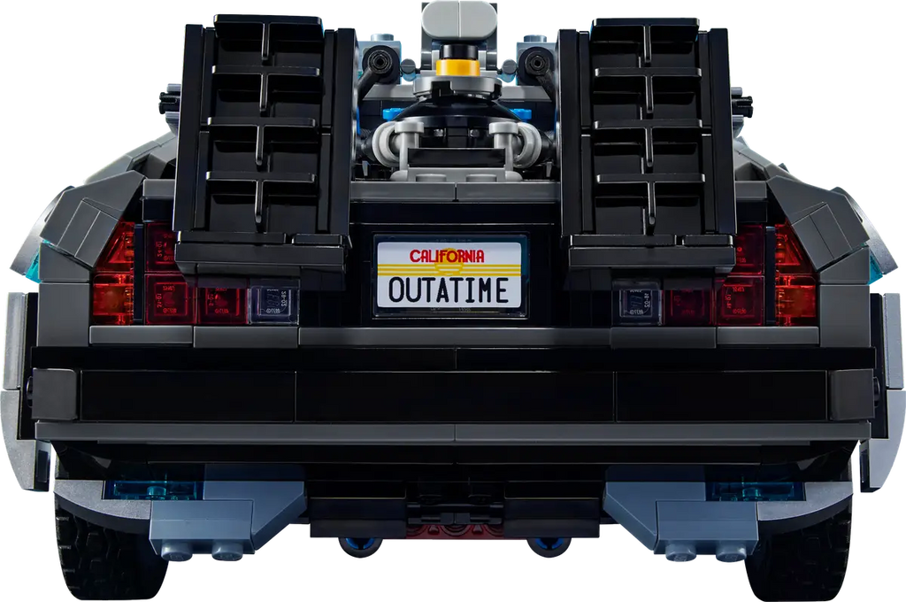 - This LEGO car for adults has gull-wing doors, fold-down wheels, light-up flux capacitor, printed dates on the dashboard and an opening trunk