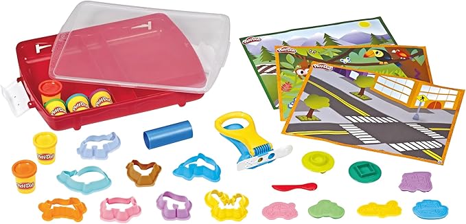 3 DOUBLE-SIDED PLAYMATS: Each Play-Doh playmat has a different scene that lets them tell their own stories, practice matching shapes and colors, and more